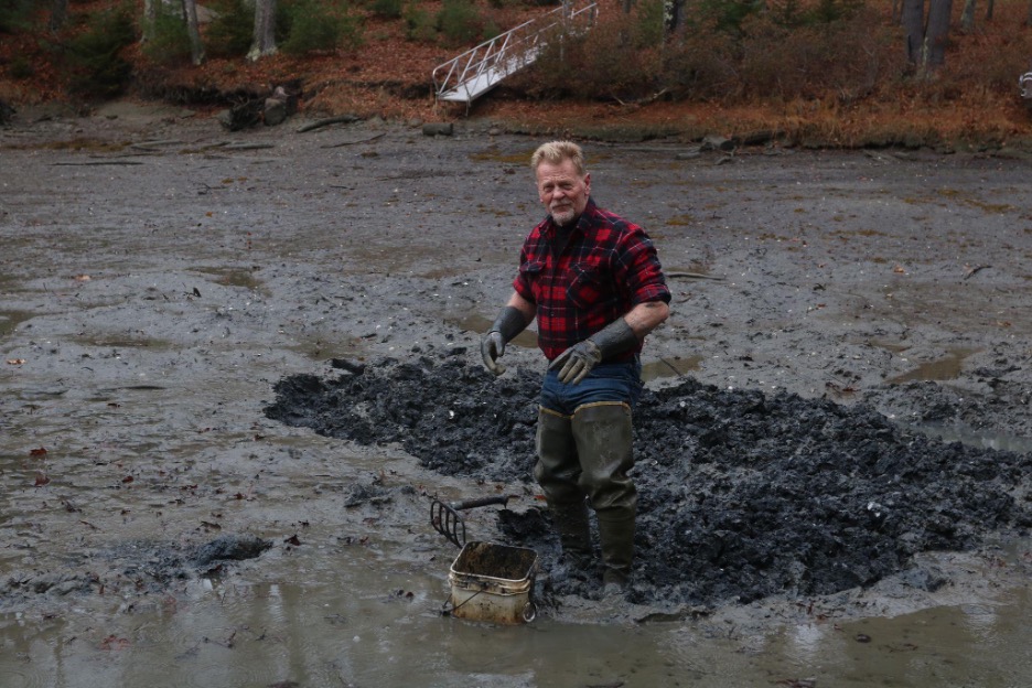 We pulled on our boots and trekked through the woods on a path thick with fallen leaves. This was great PR, we quipped: two generations of clammers! Then Terry shifted focus to Casey’s burgeoning comedy career. In the last few years, Casey has started blowing up in the New England stand-up comedy scene. I’ve even seen him take the stage at a sold-out show in Portland! In person, however, out there in the woods and on the flats, I chatted mostly with Terry.