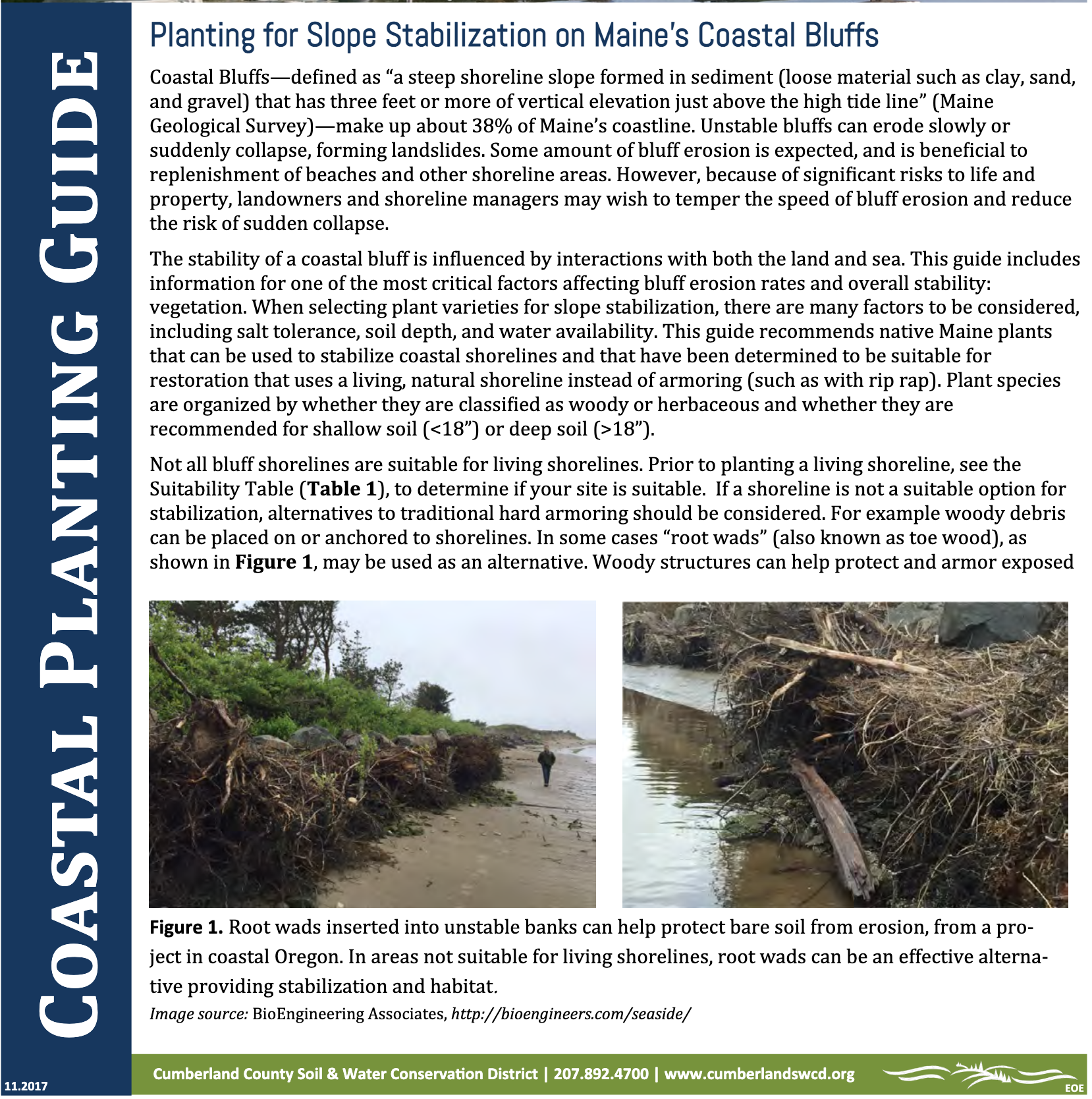 This PDF is widely recognized as the go-to resource for coastal planting in Maine, offering practical guidance on using native vegetation to stabilize bluffs and strengthen shoreline resilience.