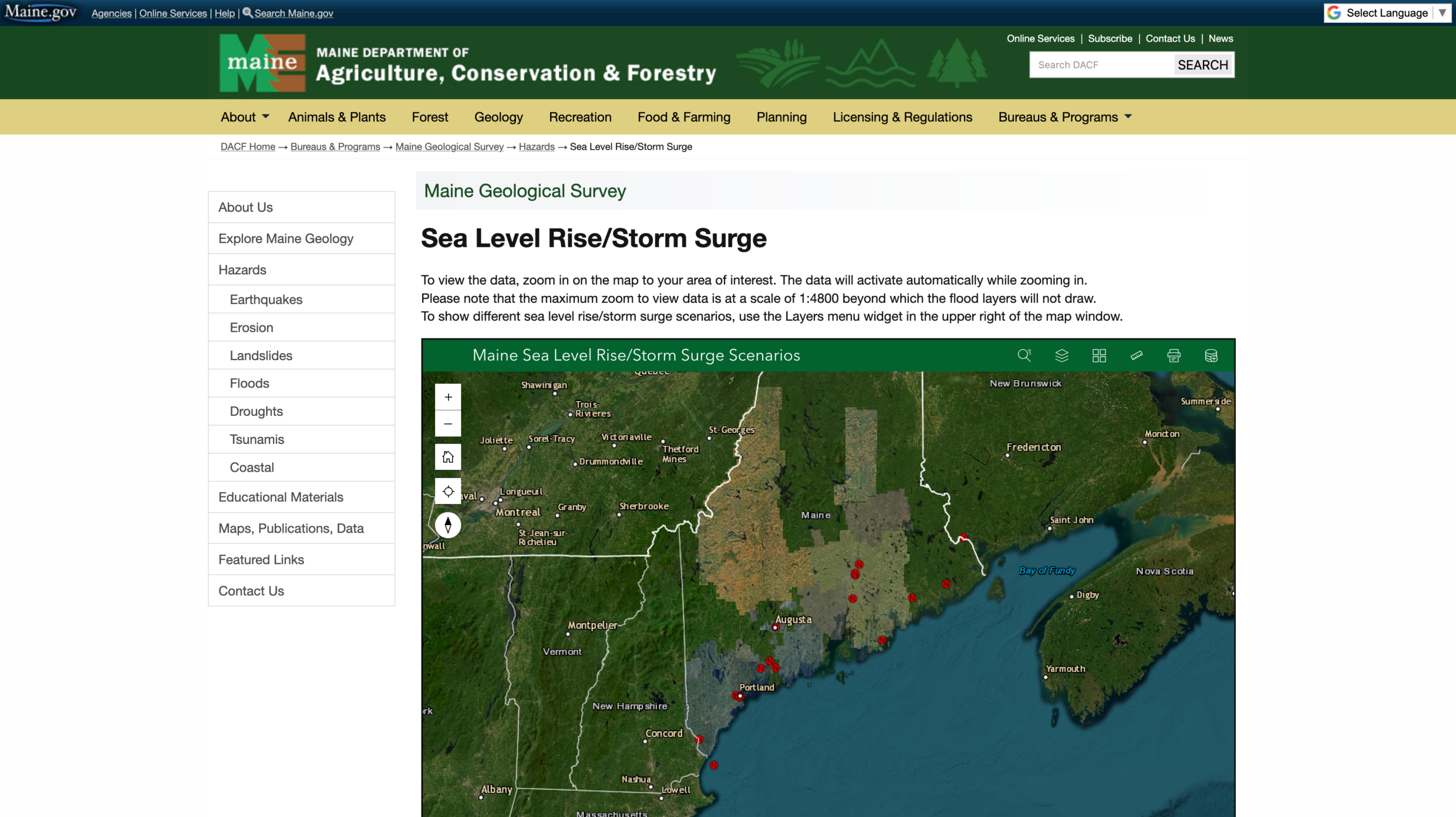 This site clearly explains how climate change is reshaping coastal Maine, what risks lie ahead and the impacts to coastal communities.