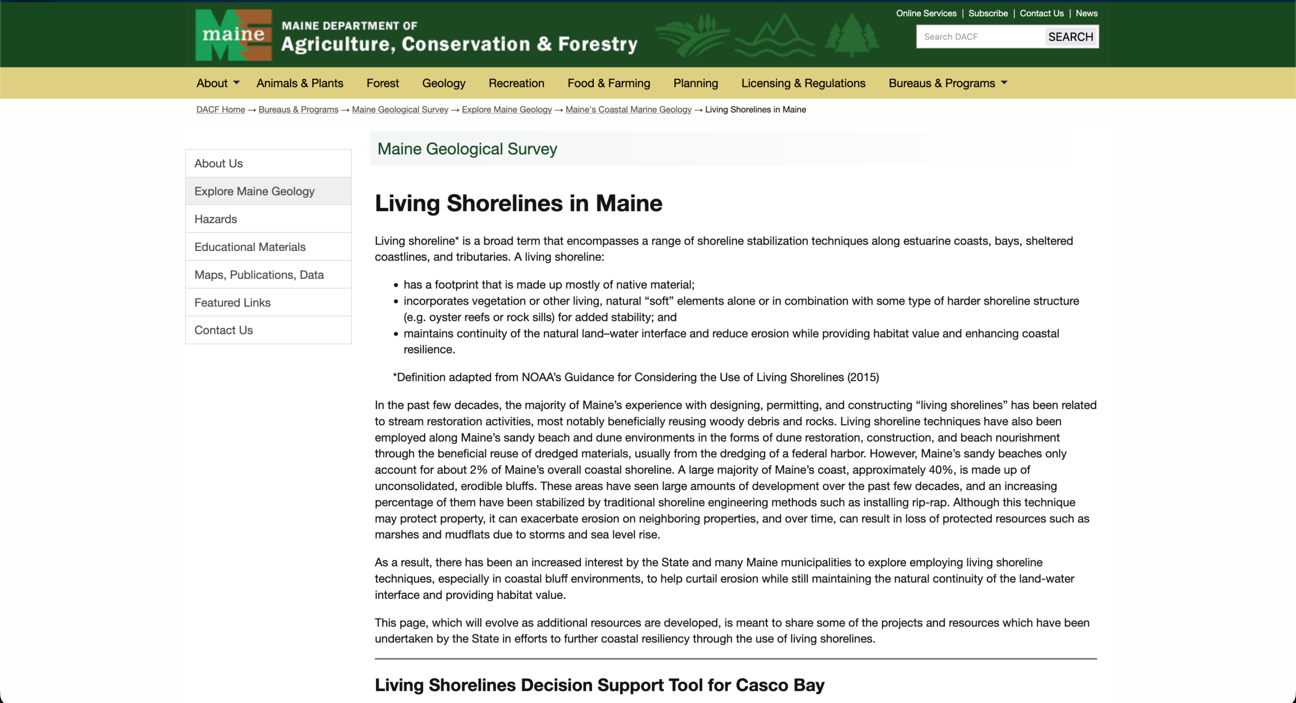 This page highlights Maine’s growing efforts to use nature-based solutions to address erosion, and showcases case studies that support coastal resilience.