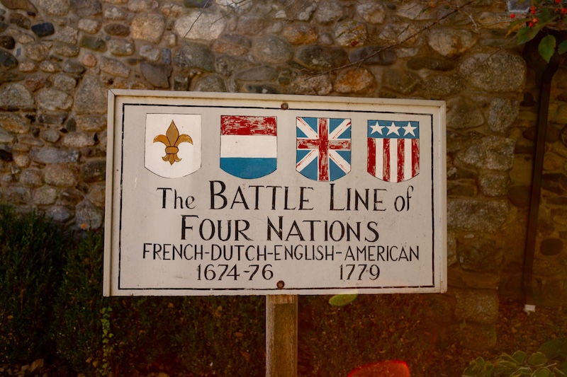 Yet for all its college-town gentility, this narrow peninsula headland—very nearly an island—has been fought over for its strategic geographic location by the French, Dutch, British, and Americans. Signs are placed along the streets at the locations of various forts, battles, and burial grounds. One even notes the site where a Native person cut off the ear of a local man and made him eat it.