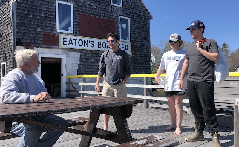 Sitting at a picnic table on his pier, rebuilt after the 2024 storms, Eaton talks about his family history here. His grandfather Mace Eaton “came up from Deer Isle in two dories for a job and never left.” Mace bought the property in 1931; the building dates back to 1860.