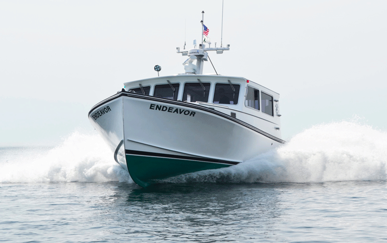 The 42-foot Endeavor has a 15-foot beam and is powered by an 800 horsepower V8 MAN Tier III diesel engine with a ZF500-1A marine gear.