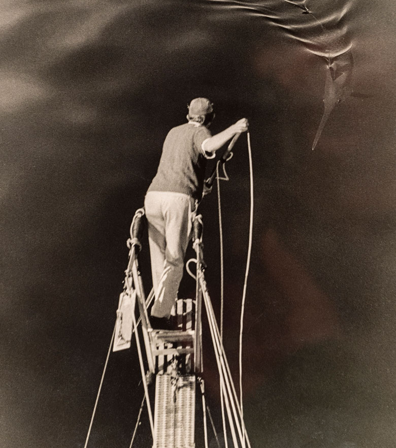 Cornell knew he wanted to capture the moment when the harpooner and the swordfish were face to face. He had numerous chances that day, but the perfect shot was elusive until he found an ideal vantage point atop the pilot house.