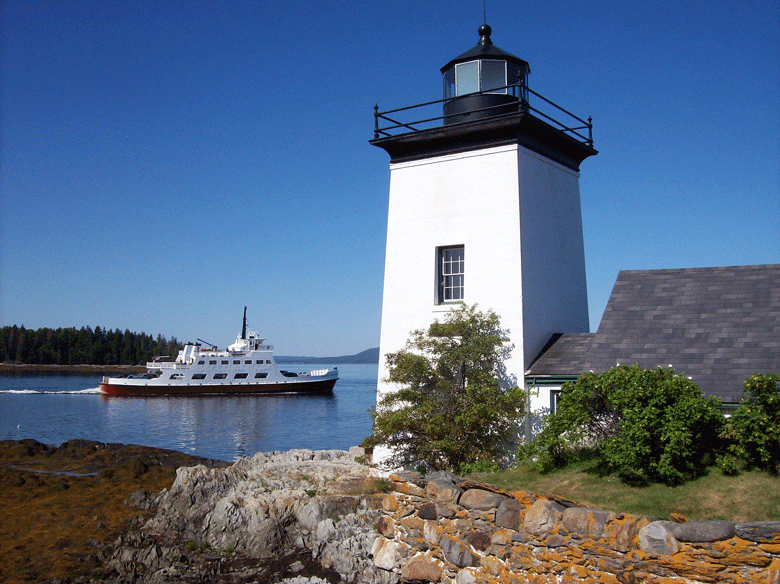 From the top deck of the Margaret Chase Smith ferry, the first thing that can be seen approaching Islesboro is the Grindle Point Lighthouse. Standing at the northern edge of Gilkey Harbor and next to the ferry pen, the lighthouse greets residents and visitors alike to the island.
