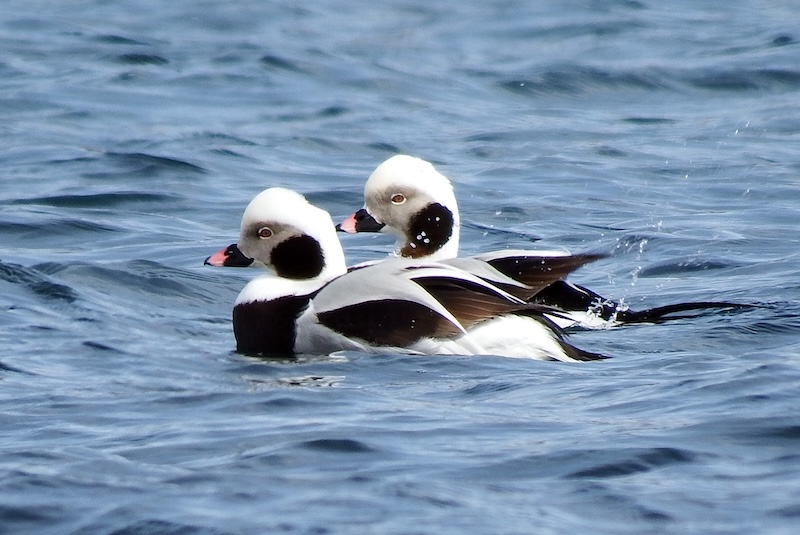 Some birds seen along the waterfront have nested in Maine. Common loons and common goldeneyes make a short jump from Maine’s lakes and ponds to the coast in late autumn. However, most of the wintering birds nested north of Maine. Harlequin ducks, buffleheads, long-tailed ducks, red-breasted mergansers, and three species of scoter will head back there again in April. Horned and red-necked grebes will do likewise.