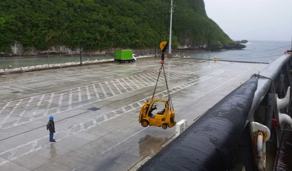 First of all, this ship is 700 feet long and takes half a mile to turn 180 degrees. In Apra Harbor, Guam, there isn’t that much space to move around. The ship gets a push from two tugboats, one on each end, and they help turn the ship around in its own length so it can go port-side to the pier.