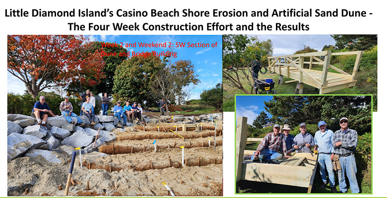 A project used natural techniques to repair eroded shoreline on Little Diamond Island. PHOTO COLLAGE: KAI HOLLOWAY