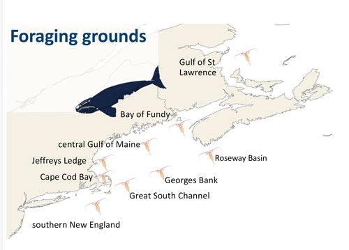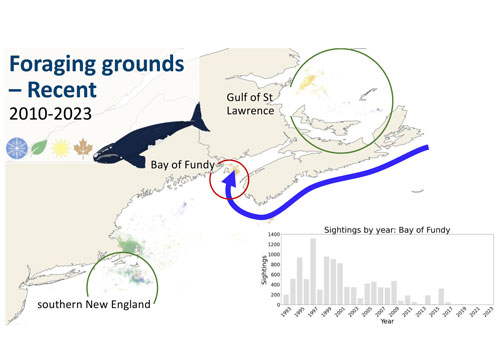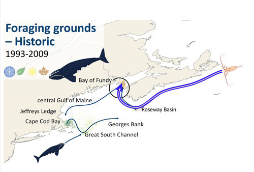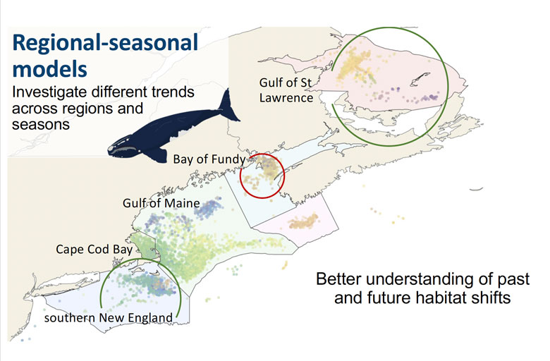 The modeling using this data predicted which historical foraging areas would be maintained, and which would not, and which areas right whales would go to in the future, including the Sackville Spur area.