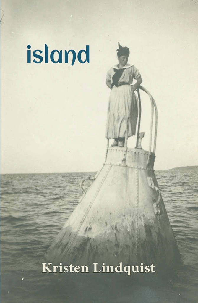 These visits inspired a life-long love of islands and, most particularly, of Monhegan. This past summer Lindquist worked at that island’s museum of art and history. That’s where she found the image on the cover of Island: a delightful black-and-white photograph of one Alice Brown standing atop a slightly tilted navigation buoy. The figure might be the poet herself, seeking haiku inspiration in the wide world around her.